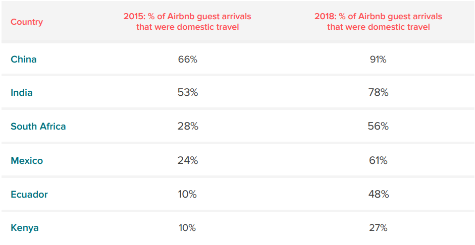 國內旅遊驅動了 airbnb 很大的成長幅度